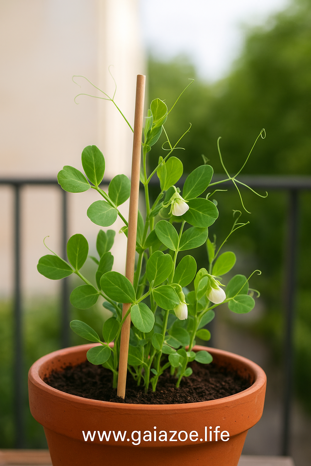 I piselli sono perfetti per la coltivazione in vaso. Non richiedono grandi spazi né cure eccessive: basta un balcone soleggiato, un vaso profondo almeno 20–25 cm, un buon terriccio e un piccolo sostegno su cui la pianta possa arrampicarsi.