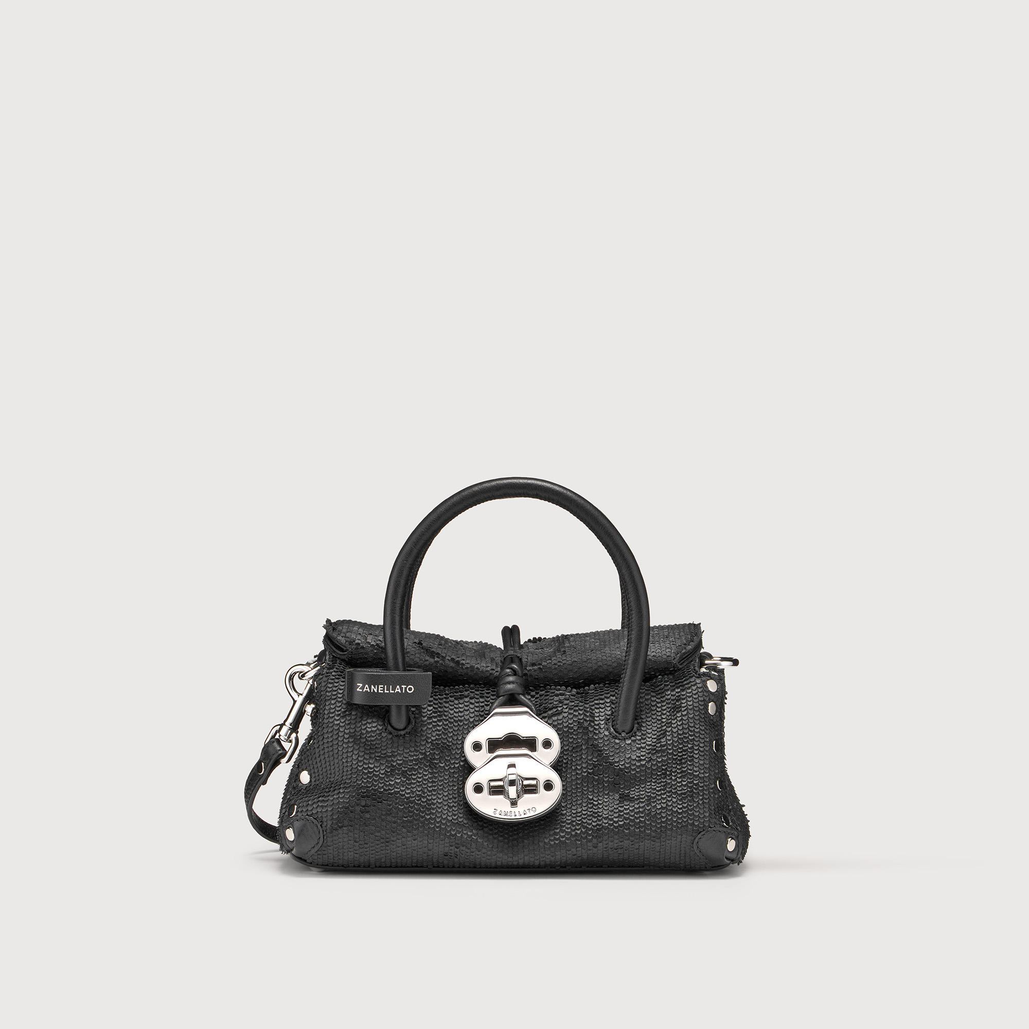 Nascono così le nuove versioni della Postina® e della Dotta®, due icone della maison reinterpretate in versione mini e sofisticata, realizzate in un pellame effetto velluto lavorato in 3D. Le tonalità scelte — neromat, intenso e raffinato, e argento, luminoso e vibrante — restituiscono tutta la poesia visiva e tattile del velluto artigianale, proiettandolo nel futuro.